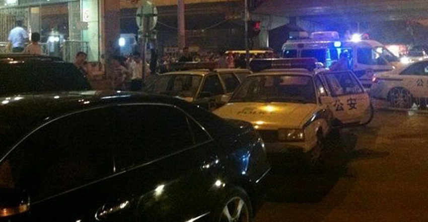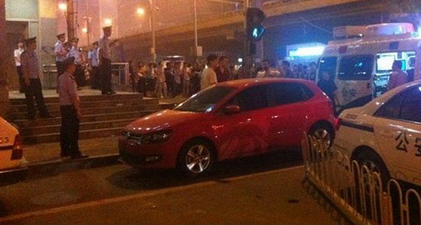 呼家楼地铁站外, 有多辆警车。