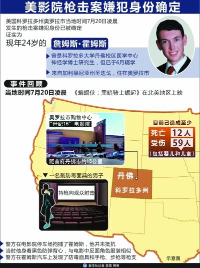 据新华社电 美国科罗拉多州奥罗拉市20日凌晨发生的枪击案嫌犯身份已被确定,证实为现年24岁的詹姆斯·霍姆斯。