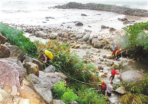 昨天10时06分,深圳山地救援队接到报警,有6名“驴友”在海柴角附近被困一晚,有人因脚受伤无法行动,乘坐的“大飞”(摩托艇)因天气恶劣海况复杂不能靠岸。