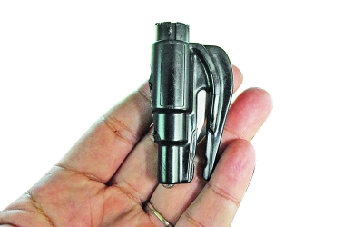 如何使用ResQMe?来自广东的一位店主告诉记者,把这玩意儿对准汽车边窗玻璃,用力一压它的屁股,隐藏的撞针便释放,瞬间击碎窗玻璃,然后撞针自动回位,可以反复使用——好像圆珠笔一样。“使用起来和弹簧圆珠笔一样的道理,中间有撞针弹出。撞针能产生12磅的力量,瞬间把车窗击碎。” 谢 尧