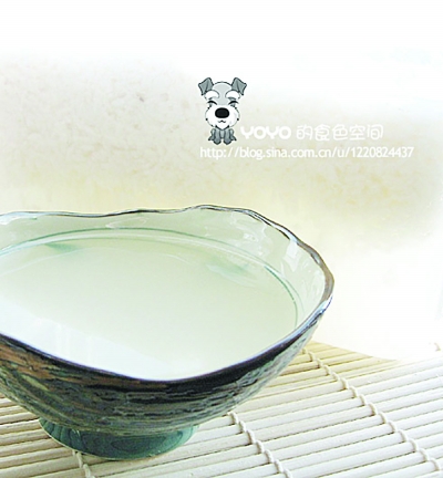 6、待温度降到32℃以下、25℃以上,即可倒入米酒曲11g,充分搅拌。