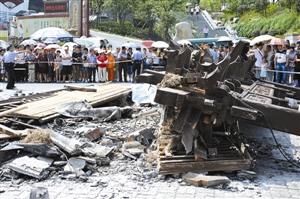 8月12日上午9时40分左右,杭州吴山广场河坊街上一座五六米高的砖木结构牌坊突然倒塌,造成2人死亡,3人受伤。