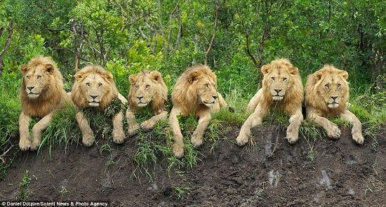 在非洲草原,威猛的狮子们也在排队,它们不用担心危险,正在悠闲的享受着清晨的好空气。