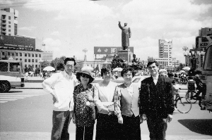 1997年,东北师大中文系62届六班毕业35周年同学聚会,本文作者(右一)与几位同学在沈阳留影,文中提到的高扬(中)也在其中