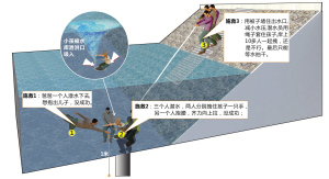 他快速冒出水面,憋足一口气,再次潜入水下。在水底,范军威双手环抱住儿子,用脚猛力一蹬地面。