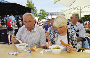 台上的乐队演奏,如在自家花园一样享受柏林短暂的夏日时光。还有不少民众参加新闻办公厅门前的攀岩大赛。而国防部的抽奖奖品则让人拿到手软。