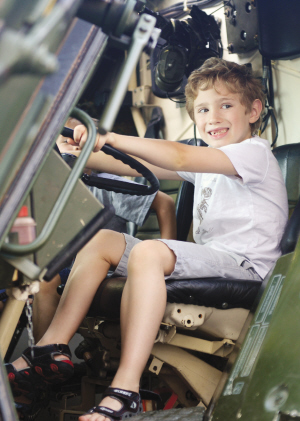 在国防部,小朋友在一辆装甲车上留影。
