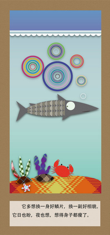 三等奖作品《鲨鱼的誓言》,鲨鱼因为外表丑陋,向月亮要银纱衣。