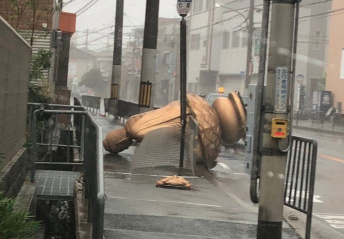 9月5日报道,目前,台风飞燕强度比较稳定,仍为强台风(45m/s),但移动速度大大加快,飞燕”将以每小时60公里左右的速度向北偏东方向移动,快速向日本靠近。日本网友在网络上发布了自己拍摄的台风中的一些“惨状”。