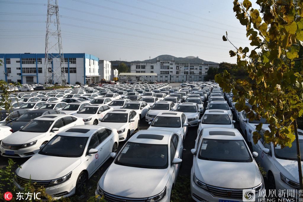 11月1日报道,10月31日 ,江苏省南京市。南京网约车市场降温,千辆网约车搁置成汽车坟地!南京市铁心桥工业园区某停车场内,停放了大量的网约车。来源:东方IC