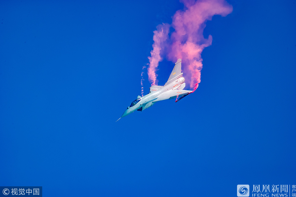 11月6日报道,广东珠海。2018珠海航展正式开幕,中国歼10B矢量推进验证机首次公开表演著名的普加乔夫眼镜蛇机动。来源:陈肖/视觉中国
