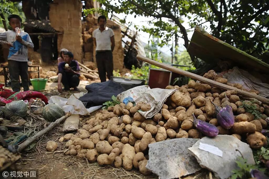 资料图:2017云南鲁甸6.5级地震后当地农民抢收土豆