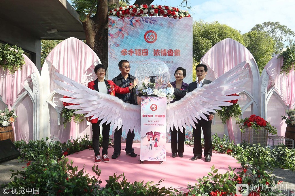 12月4日报道,11月30日上午,“各位是否自愿结为夫妻?”“是!”20对新人异口同声许下爱的誓言,由深圳市福田区民政局主办的“牵手福田· 浓情香蜜”福田区民政局婚姻登记处香蜜公园新址启用仪式在香蜜公园举行,20对新人举行了集体婚礼,收获美好祝福。来源:视觉中国
