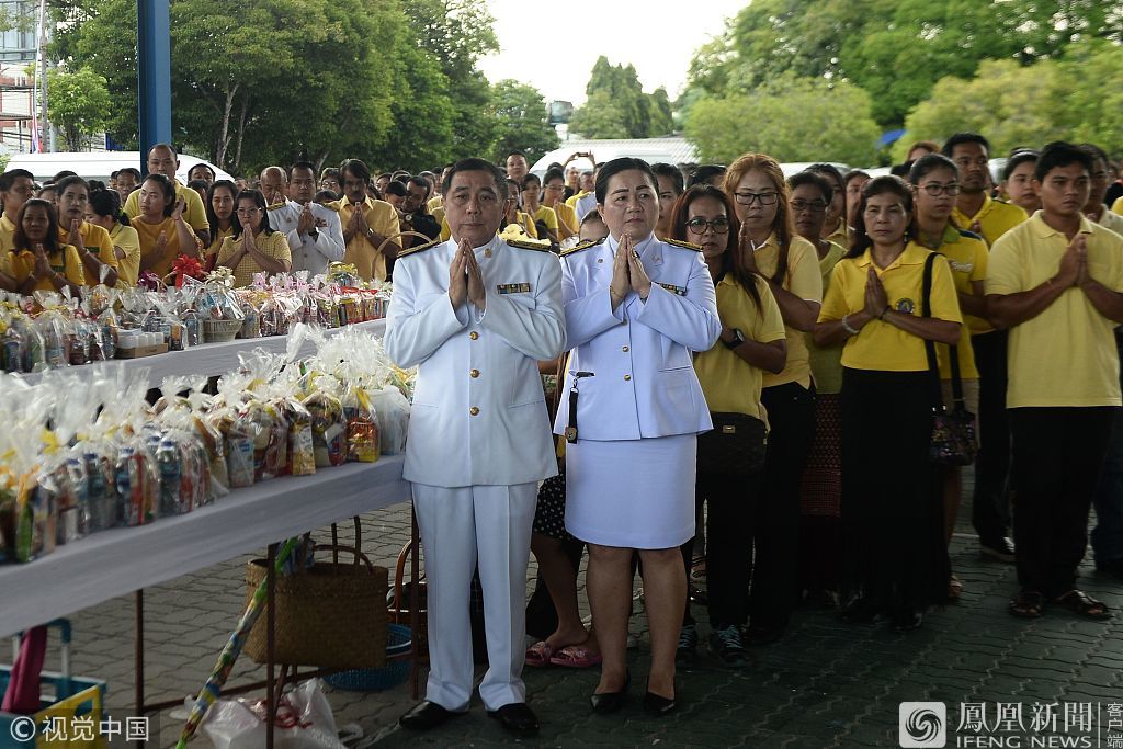 12月5日报道,泰国南部纳拉西瓦省举行已故国王普密蓬·阿杜德的诞辰庆典,民众向佛教僧侣施舍祈福。来源:视觉中国