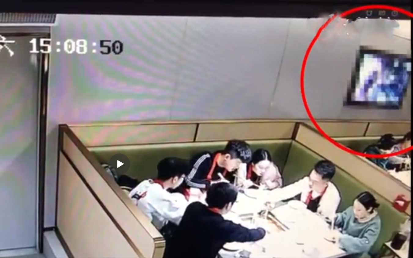 1月11日报道,近日,湖北武汉,海底捞江汉路店食客用餐时,墙上电视突然播放不雅视频。图为监控画面。来源:梨视频