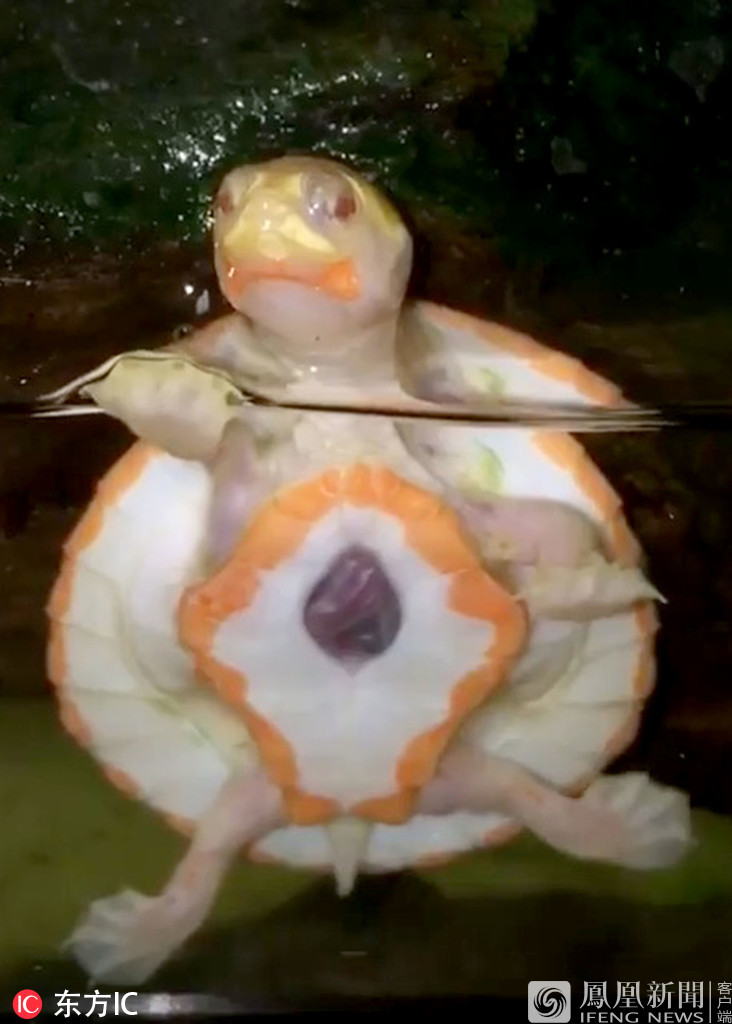 罕见白化小乌龟 心脏长“体外”