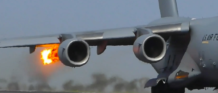 3月6日报道,近日,在2019年澳大利亚的爱华隆航展上,一架美军的C-17战略运输机在起飞时右外侧发动机遭遇鸟撞袭击,当时发动机尾部喷出火焰,但由于当时还未加速滑跑,所以飞机并未起飞并很快停下,并未造成更大损失。来源:环球网