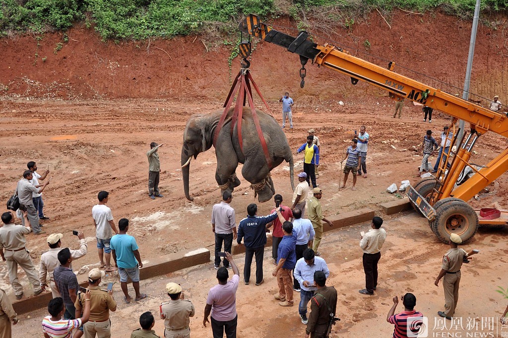 5月5日报道,近日,印度古瓦哈蒂,一头大象从当地一个野生动物保护区逃到闹市寻找食物引发恐慌,被当地森林官员用起重机释放。来源:视觉中国