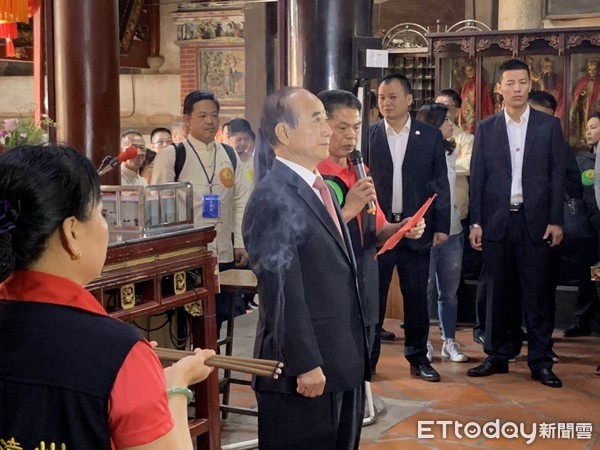 5月8日报道,王金平7日上午前往福建省漳州白礁村王氏宗祠扫墓祭祖。他在祭祖后对宗亲发表谈话指出,王氏宗亲数百年来,不分两岸,血脉相连,都是中华民族的一份子,都是中华儿女,既是同根生,也是一家亲,所以弘扬中华文化将是追求共同发展的基础。图为王金平参拜白礁慈济宫。