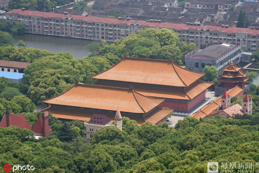 5月16日报道,江苏省无锡市。在具有天下第一村的江阴华西村内,华西村将全球各地的景观“搬”到自己村内。图为华西村内山寨的故宫。来源:IC photo