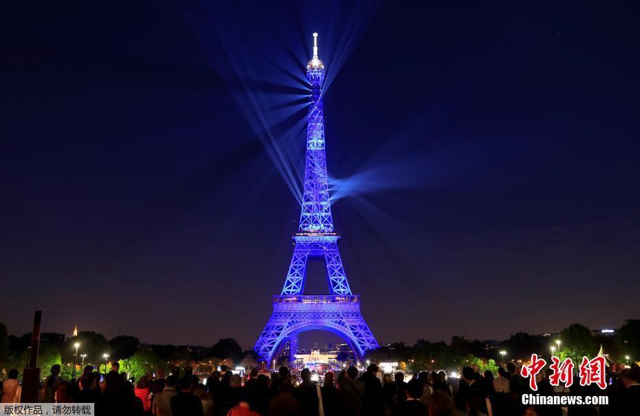 5月16日报道,当地时间5月15日,法国巴黎,埃菲尔铁塔上演“灯光秀”庆祝落成130周年。埃菲尔铁塔由法国建筑师居斯塔夫·埃菲尔设计,于1889年3月31日落成。来源:中国新闻网