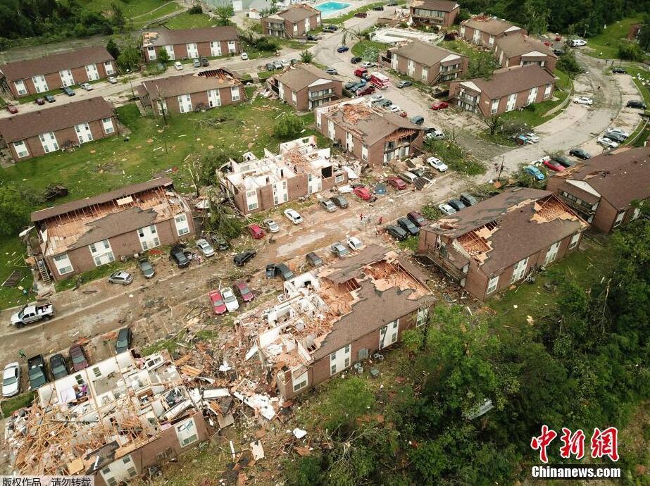 5月24日报道,当地时间5月23日,猛烈龙卷风横扫密苏里州,已经导致至少3人死亡。图为航拍受灾地区的民居,多数房屋屋顶被掀翻。来源:中新网