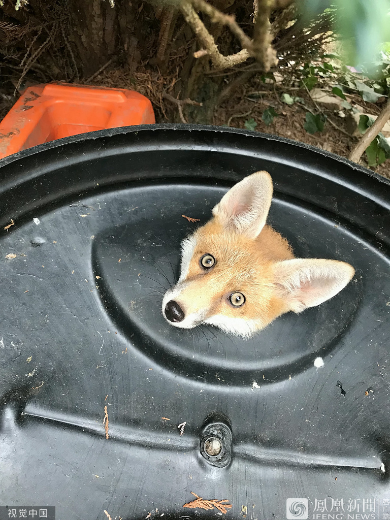 5月28日报道,近日,英国伦敦,小狐狸钻罐子脑袋被卡,进退不得眼神可怜巴巴等待救援。来源:SWNS/视觉中国