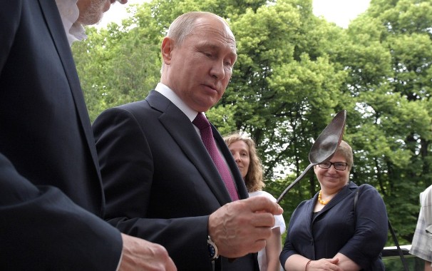 6月13日报道,俄罗斯总统普京12日参观了莫斯科克里姆林宫内的一处考古发掘现场。在考古专家的带领下,他充满兴致地了解出土物品,并对一把铜制的大勺格外青睐,普京开玩笑说“用这把勺子吃饭一定很好”。来源:海外网