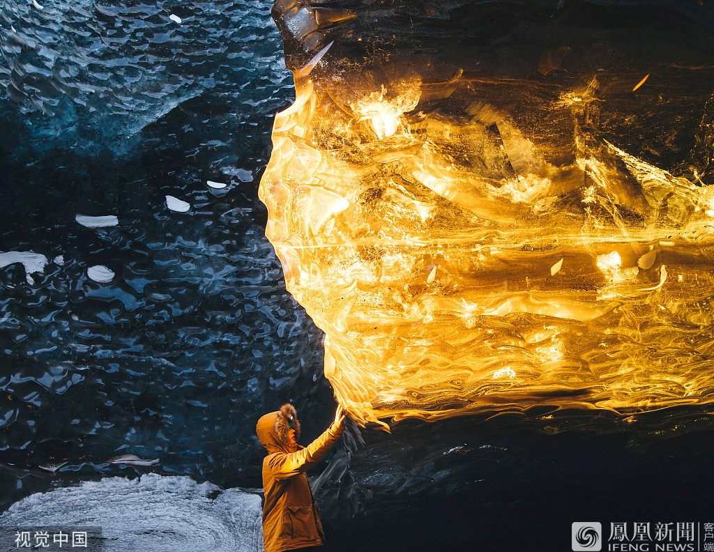 6月13日报道,近日,摄影师Sarah Bethea在冰岛冰洞拍摄到罕见一幕,太阳正好与山洞的入口排成一条直线,冰仿佛被点燃,变成金黄色,看起来就像是琥珀。据悉,这种现象一年只有一两次。来源:视觉中国