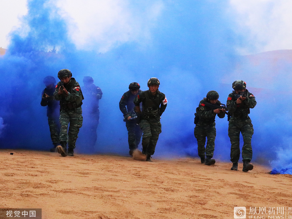 6月22日报道,6月21日,武警宁夏总队将特战分队官兵置身于腾格里沙漠,开展全方位、全领域、全时空的“魔鬼周”极限训练。来源:罗辉波/视觉中国
