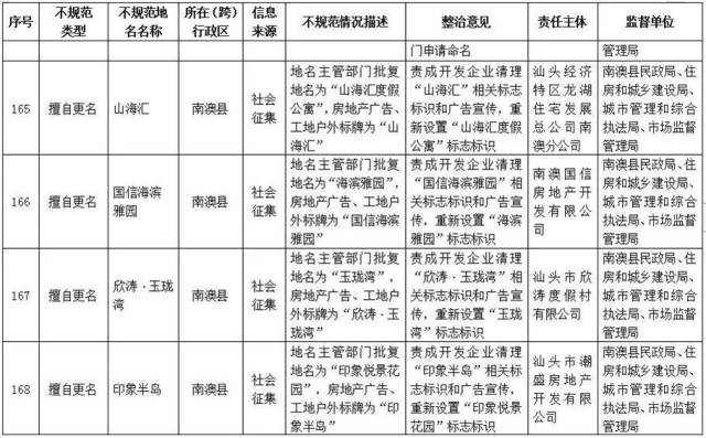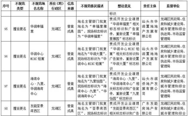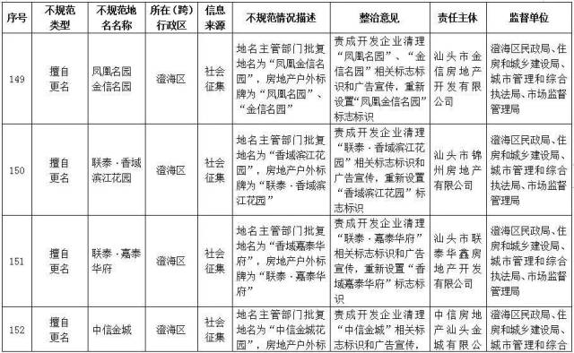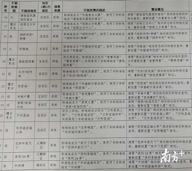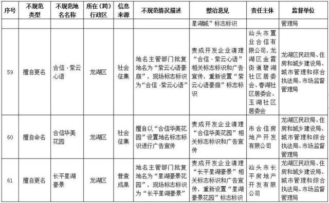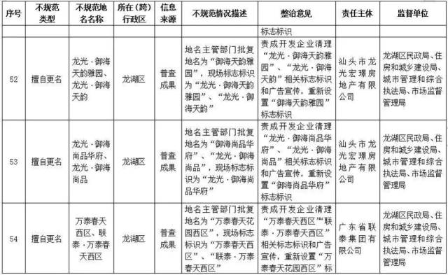 在这些不规范地名中,广州有23个,深圳首批清理整治62个、惠州有20个,汕头有178个,云浮有5个,珠海有25个。其中,大部分的不规范地名是小区名。
