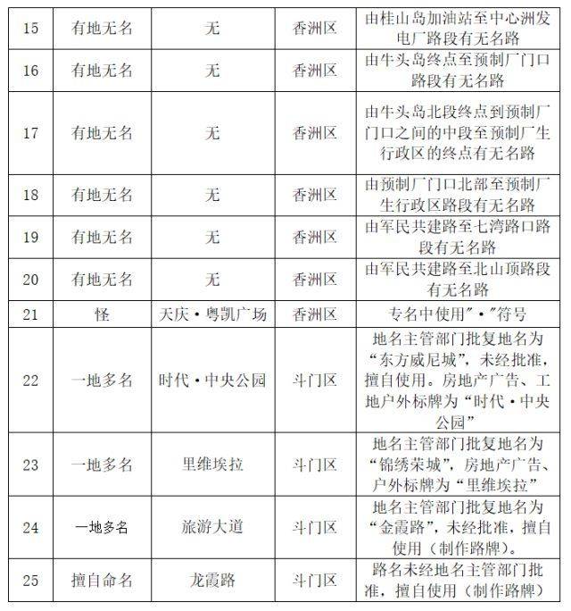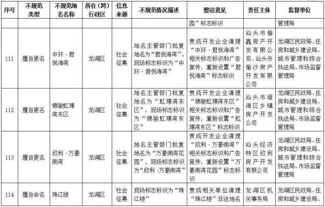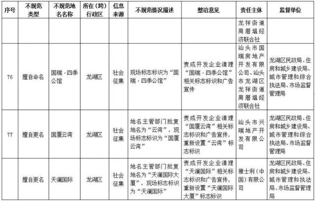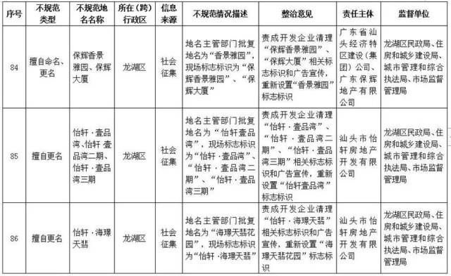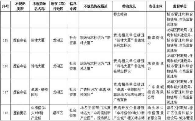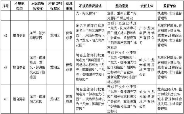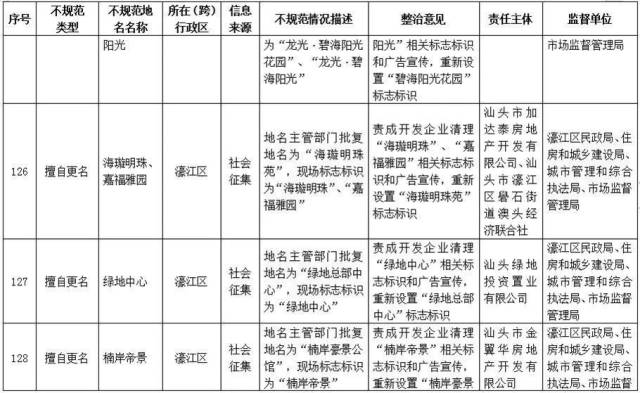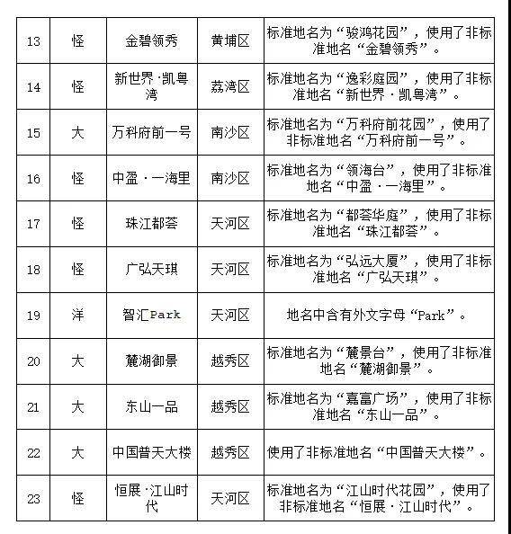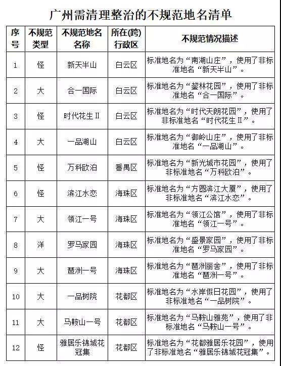 这些地方均有规范地名,而使用了非标准地名,比如,广州市海珠区的“罗马家园”,其标准地名为“盛景家园”。按照要求,将清理不规范地名的相关标志标识和宣传资料,重新设置规范标志。