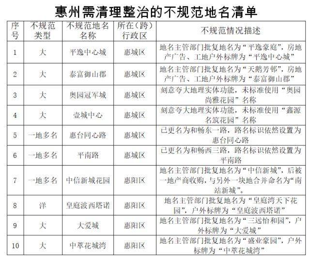 近日,广东省民政厅官网公布广东省需清理整治的不规范地名清单(第一批)。经各相关市直有关部门排查、论证,认定了第一批不规范地名,包括广州、深圳、珠海、汕头、惠州、云浮等城市。