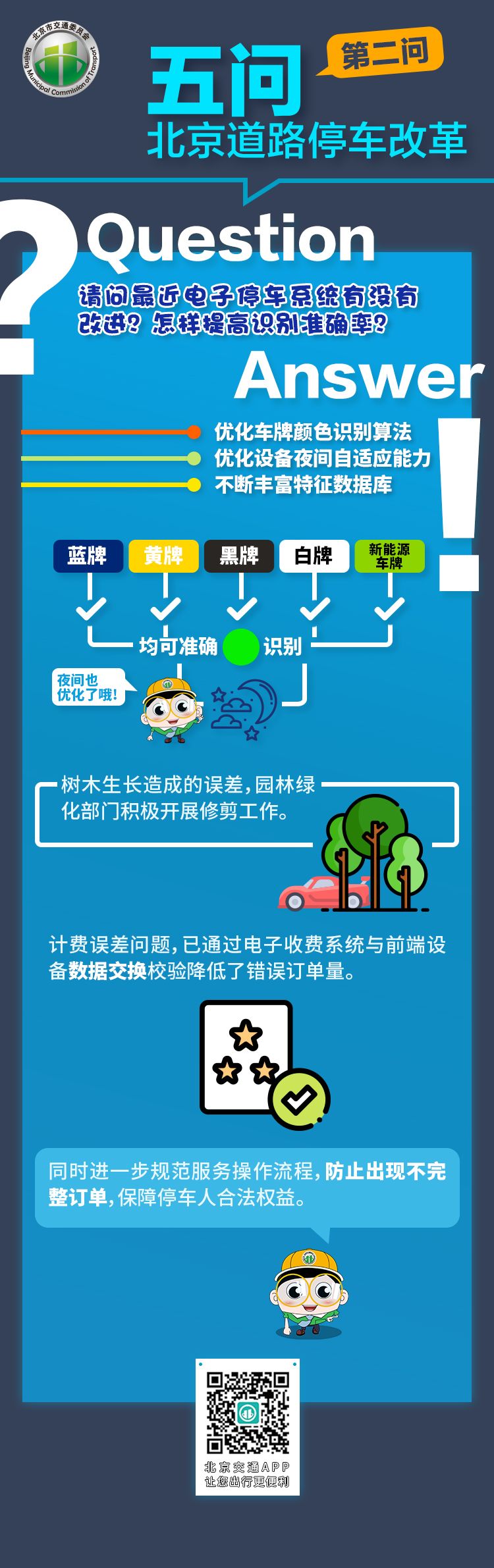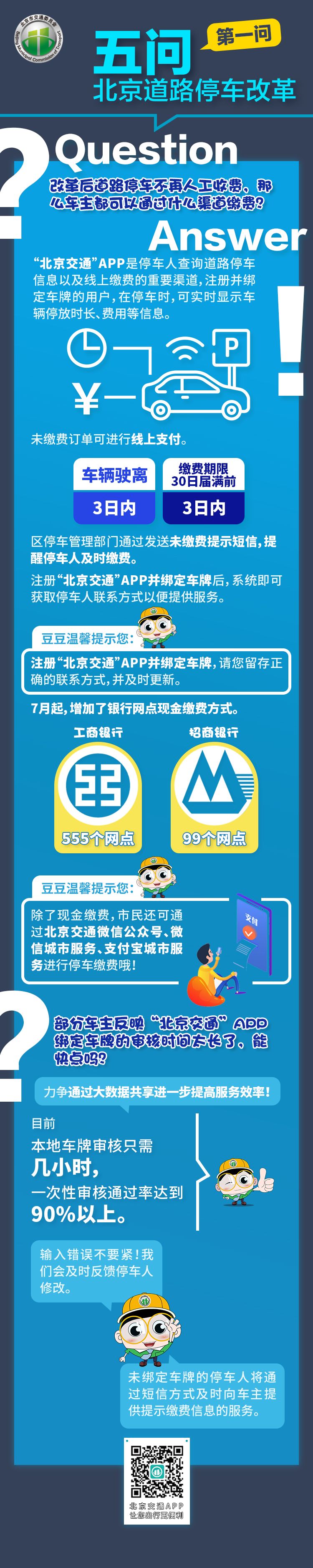 停车人可通过“北京交通”APP、微信公众号、微信城市服务、支付宝城市服务等四种渠道获知停放时间和费用,并在线缴费,今后还将逐步扩展在线缴费渠道。