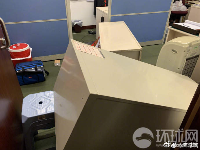 7月3日报道,3日下午,记者进入被冲击后的立法院内部,看到大楼内部设施被严重破坏,墙面和电梯上被喷漆写上极端文字,档案室的文件散落一地,休息间的设施被翻动,有议员的储物箱被撬开。此外,还可以看到会议室里碎玻璃散落一地,不明液体被泼在控制中心的键盘上。来源:环球时报