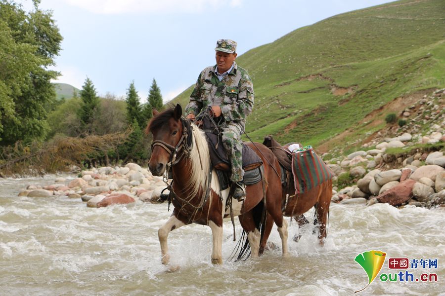努尔江骑马度过湍急的河流。中国青年网记者李川摄