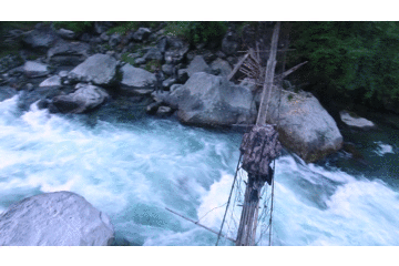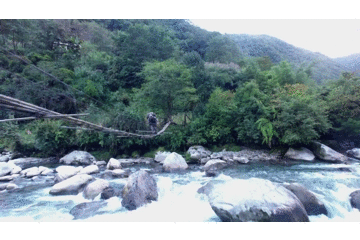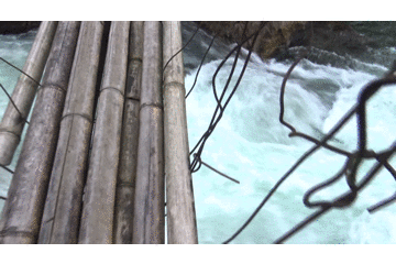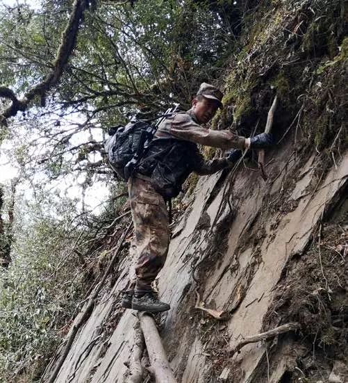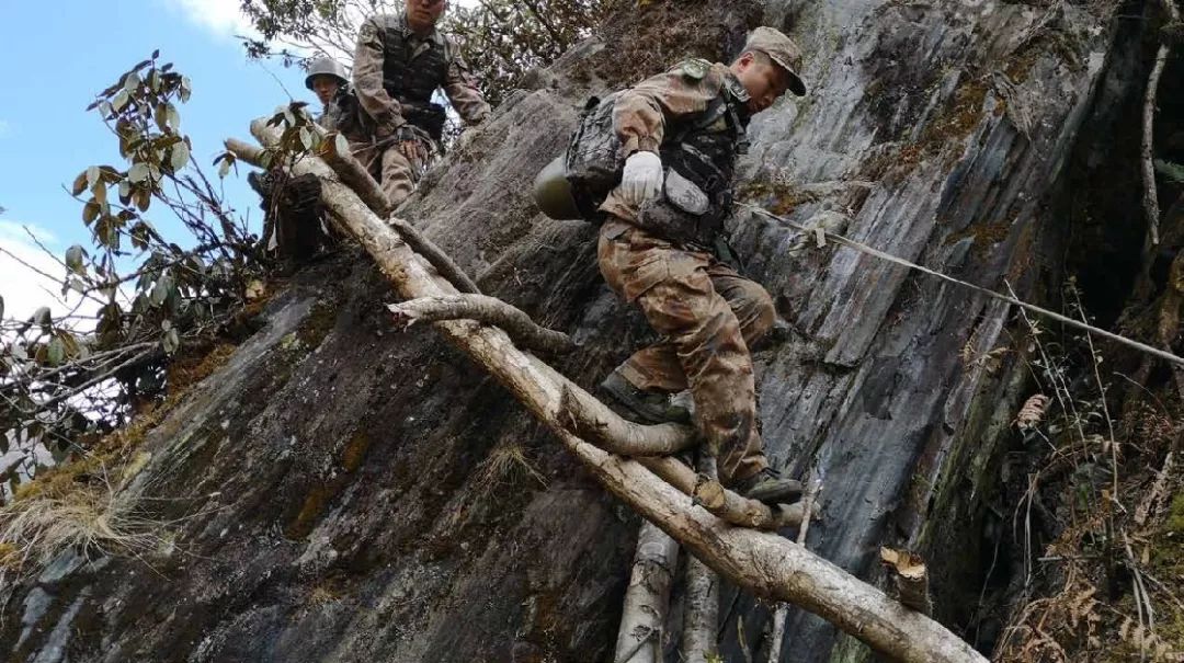 一边是悬崖,一边是绝壁,巡逻官兵只能搭设悬梯通过。