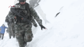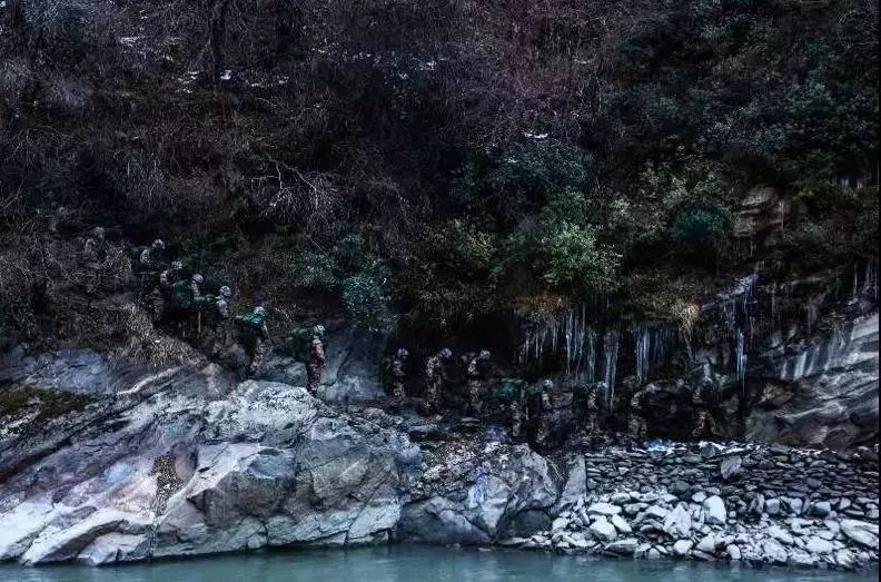 巡逻官兵小心翼翼走过铺满暗冰的悬崖边缘。