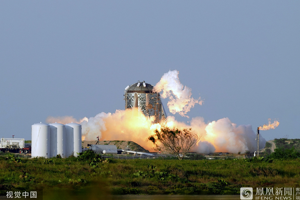 当地时间7月24日,美国德克萨斯州博卡奇卡,SpaceX公司对“星际飞船”的测试模型Starhopper进行测试时再出意外。来源:VERONICA CARDENAS/视觉中国