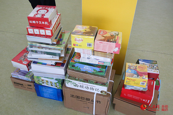 图为陈玮在幼儿园所赠书籍文具。许珠珠摄