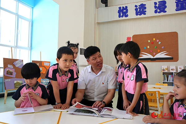 图为北京援疆干部陈玮在幼儿园给孩子们讲图画故事。许珠珠摄