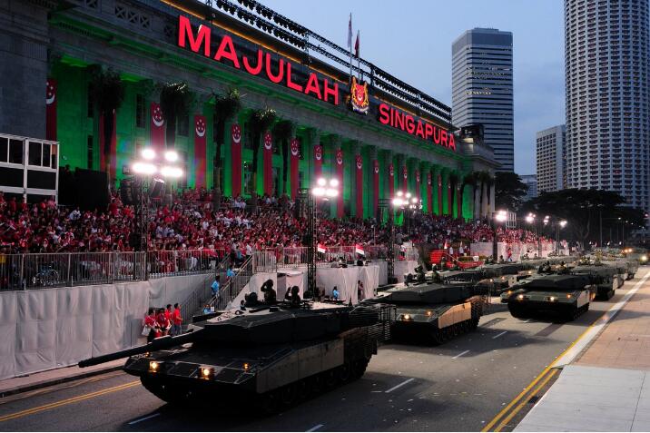 当地时间8月9日傍晚,新加坡在政府大厦大草场(Padang)举办行了隆重阅兵活动,以此来纪念第54个共和国独立日,同时也展示新加坡开埠200周年的风采。