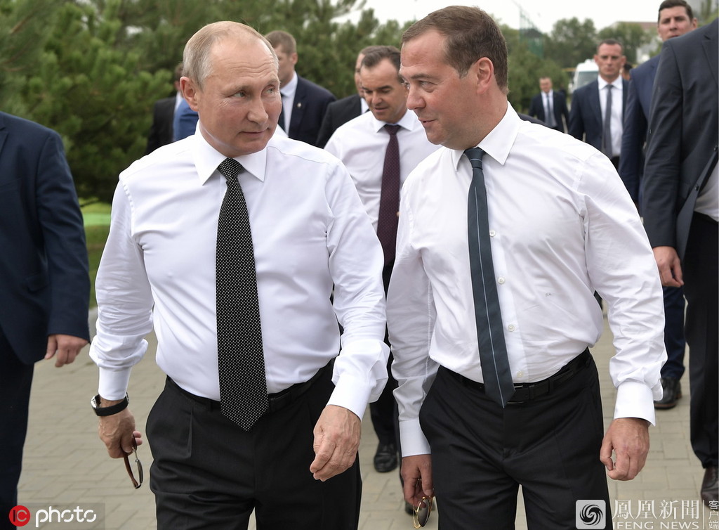 当地时间8月16日,俄罗斯克拉斯诺达尔边区,俄罗斯总统普京和总理梅德韦杰夫共同出访此地。来源:itartass/IC photo