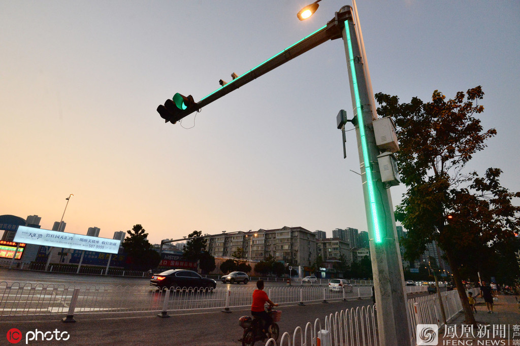 9月11日报道,近日,河北省邯郸市丛台路与东柳大街交叉口出现一种新型交通信号灯。这种新型交通信号灯是在传统灯杆上加装了灯带,使得整个灯杆能随信号灯的变化一同发亮,整体呈现“7”字形发光效果。来源:郝群英/IC photo