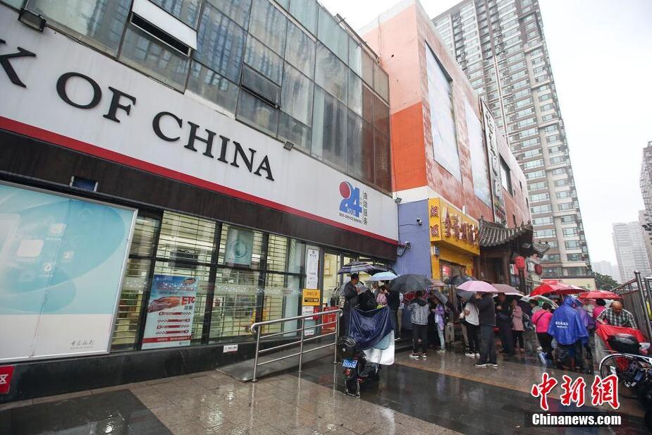 9月11日报道,9月11日,山西省太原市,大量民众冒雨前往银行预约。当日,由中国人民银行发行的中华人民共和国成立70周年双色铜合金纪念币开始公开预约。该双色铜合金纪念币面额为10元,直径为27毫米,材质为双金属铜合金,发行数量为1.5亿枚。来源:中新网 张云 摄