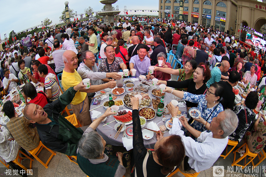 9月12日报道,2019年9月11日,一场热闹温馨的迎中秋“百家宴”在山东省威海市乳山市金鼎银龙湾广场举行,来自周边三个小区的1400多名居民,携自家的拿手好菜欢聚一堂,分享美味佳肴,共叙邻里亲情,喜迎中秋佳节。来源:唐克/视觉中国