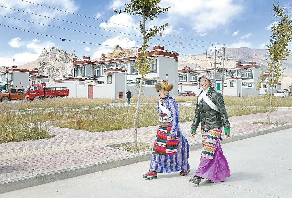西藏阿里地区日土县日松乡甲岗村海拔4400余米,有197户,是阿里地区实施边境小康示范村建设项目的典型村。当地群众在享受政策性补贴的同时,用勤劳的双手增收致富。图为2018年9月17日,甲岗村村民走在村里的路上。新华社记者 刘东君 摄