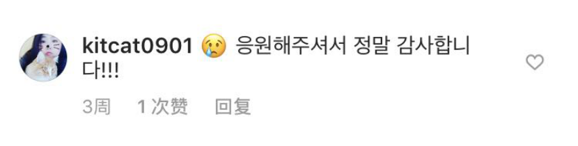 在金义圣的ins下,有网友用英文和韩文感谢其支持↓
