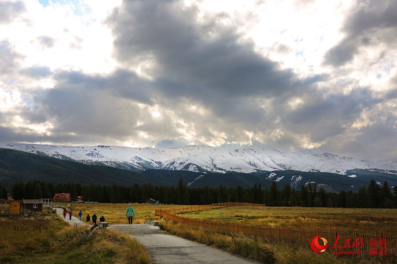 人民网哈密9月13日电(许珠珠)“一日游四季,十里不同天。哈密巴里坤草原比想象中还美,沙漠、森林、雪山依次排开,层层叠叠就像一幅美丽的风景画。”北京游客孙秀兰高兴地说。