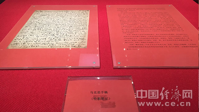 展出的马克思手稿。 经济日报-中国经济网记者武晓娟/摄